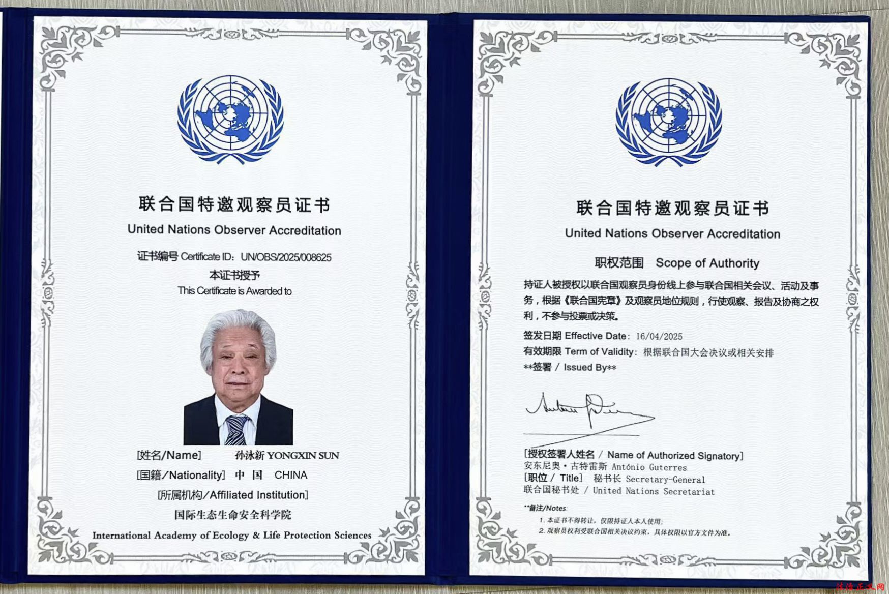 国际:2009年当选联合国生态生命安全科学院院士(首位中国画家),提出“艺术拯救人类”理念,推动生态安全议题。2025年4月当选联合国特邀观察员,行使联合国秘书处交办的权力和任务。