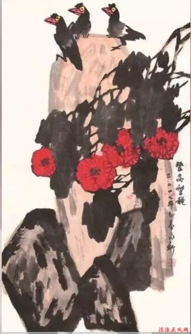 孙泳新被誉“当代大写意花鸟画高峰”,其艺术“持气骨与神韵,显沉雄与纵逸”(中央美院邵大箴评)。他以小草精神自勉,耄耋之年仍耕耘不辍,将中国写意精神推向世界,成为文化外交与生态艺术的标杆人物。