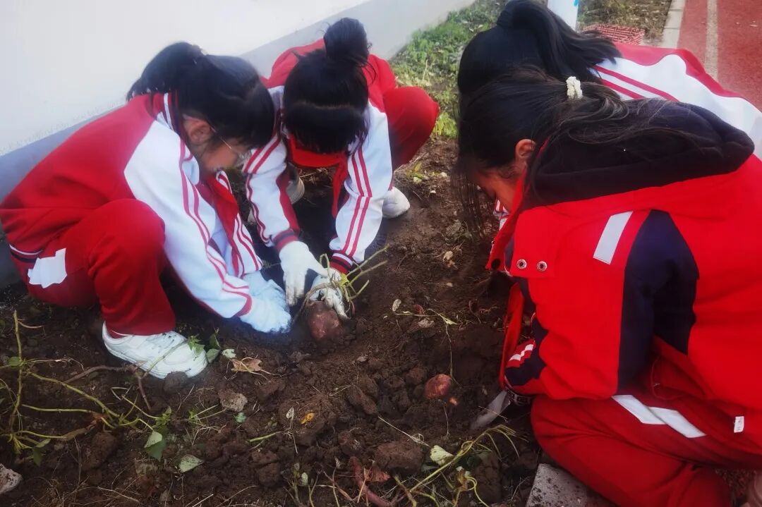 在红薯种植区:铁锹入土时的清脆声响与欢呼声交织成独特的田园交响曲。孩子们很快发现,看似随机分布的红薯实则暗藏玄机——靠近主根的往往体型硕大,边缘地带则多是细长型。