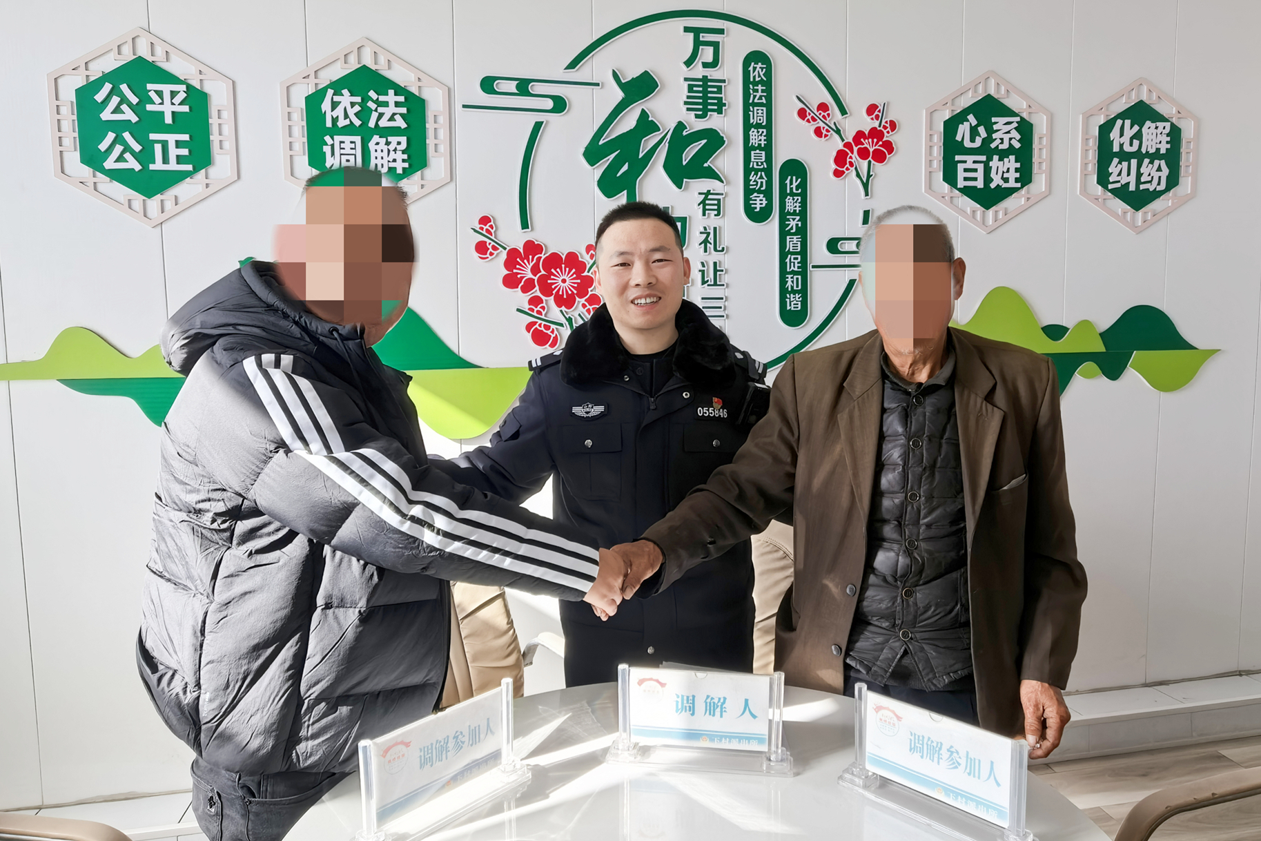 “我在墙上都写了禁止停车还敢乱停车堵我的铺子!”原来,当天早上赵某开车来下村镇办事,为了方便将车停在了张某铺子的门口,影响到了铺子的生意。双方因为挪车问题发生纠纷,张某就拿赵某汽车轮胎“出气”。赵某则对张某推搡拉扯,矛盾进一步激化。考虑到双方都有调解意向,民警秉持公平公正、以和为贵的原则,运用“背靠背”和“换位思考法”相结合的调解方式,从法律、道德、感情等多方面进行疏导,讲道理、讲法规、明要害,双方当事人逐步打开了心结,认识到了自己的错误,相互道歉握手言和。