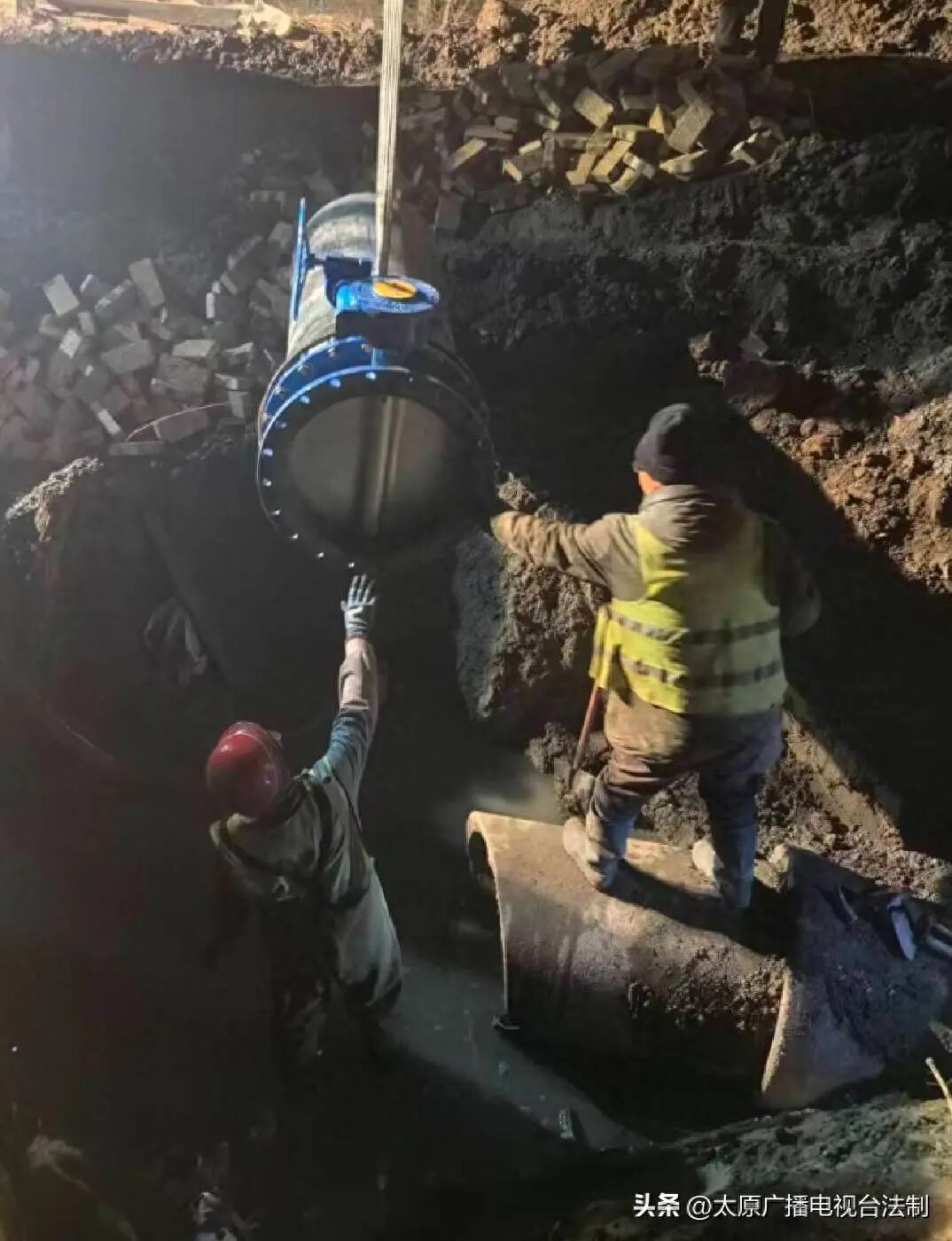 低温严寒是此次施工的最大挑战,施工期间日间气温跌破冰点,夜间气温更是降至零下十余度,极端天气给施工进度与作业安全带来双重考验。20余名施工人员坚守岗位、分工协作,开启24小时不间断作业模式:施工现场灯火彻夜通明,2000型移动方舱抽水设备满负荷运转,高效疏导施工段上游来水;150型挖机与60型炮锤精准配合,稳步推进沟槽开挖与障碍清理;管道铺设、树木移栽、检查井砌筑等工序无缝衔接、有序推进,最终如期完成全部施工任务。据悉,本次工程累计铺设混凝土管道27米,砌筑检查井1座,安装中线蝶阀1个,移栽树木60棵,显著提升晋祠泉域排水能力,目前南湖已恢复正常水位,文物与古树安全得到坚实保障,千年文脉在生态护航下绵延传承。