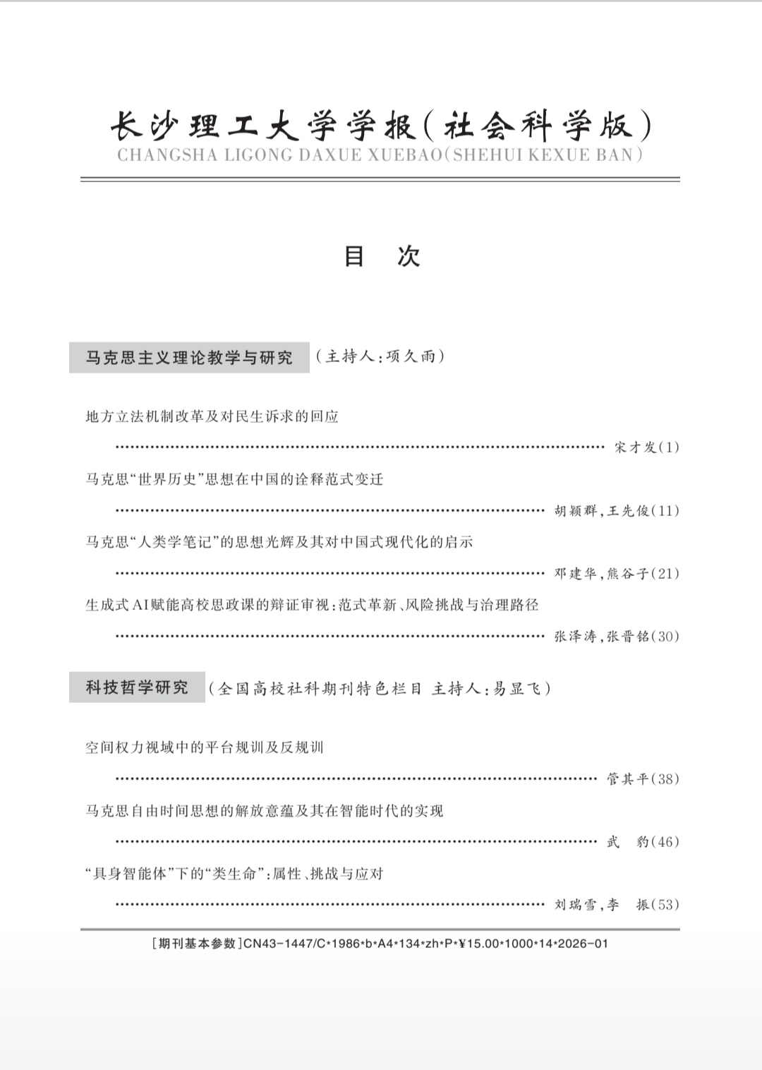法治北京2月25日电 立法法赋予全国所有设区的市的人大及其常委会立法主体资格。当下,地方立法的核心任务是为新质生产力发展保驾护航,服务于宪法规定的中国式现代化建设事业,回应国家重大战略需求和民生发展需要,为满足人民日益增长的美好生活需要提供法治保障。依法明晰地方立法在国家立法和国家治理中的角色定位,依据改革任务设定地方立法提质增效目标。良法善治是地方人大高质量立法的基本目标,合理与适度是地方人大科学立法的基本准绳,在甄别审查的基础上把村规民约纳入地方正式法规体系,适时回应民生诉求是地方立法的本质要求和显著特征,实施公众参与立法制度是回应民生诉求的有效路径。由长沙理工大学主管、主办的全国高校社科优秀期刊、中国人文社会科学期刊AMI核心期刊、RCCSE核心学术期刊(A)、湖南省社会科学基金资助期刊《长沙理工大学学报》(社会科学版),2026年第1期首篇发表宋才发教授《地方立法机制改革及对民生诉求的回应》论文。《长沙理工大学学报》(社会科学版)主编彭新宇,论文责任编辑黄园。