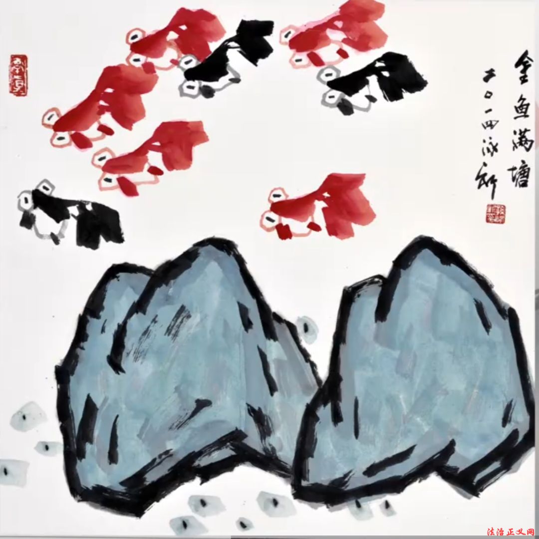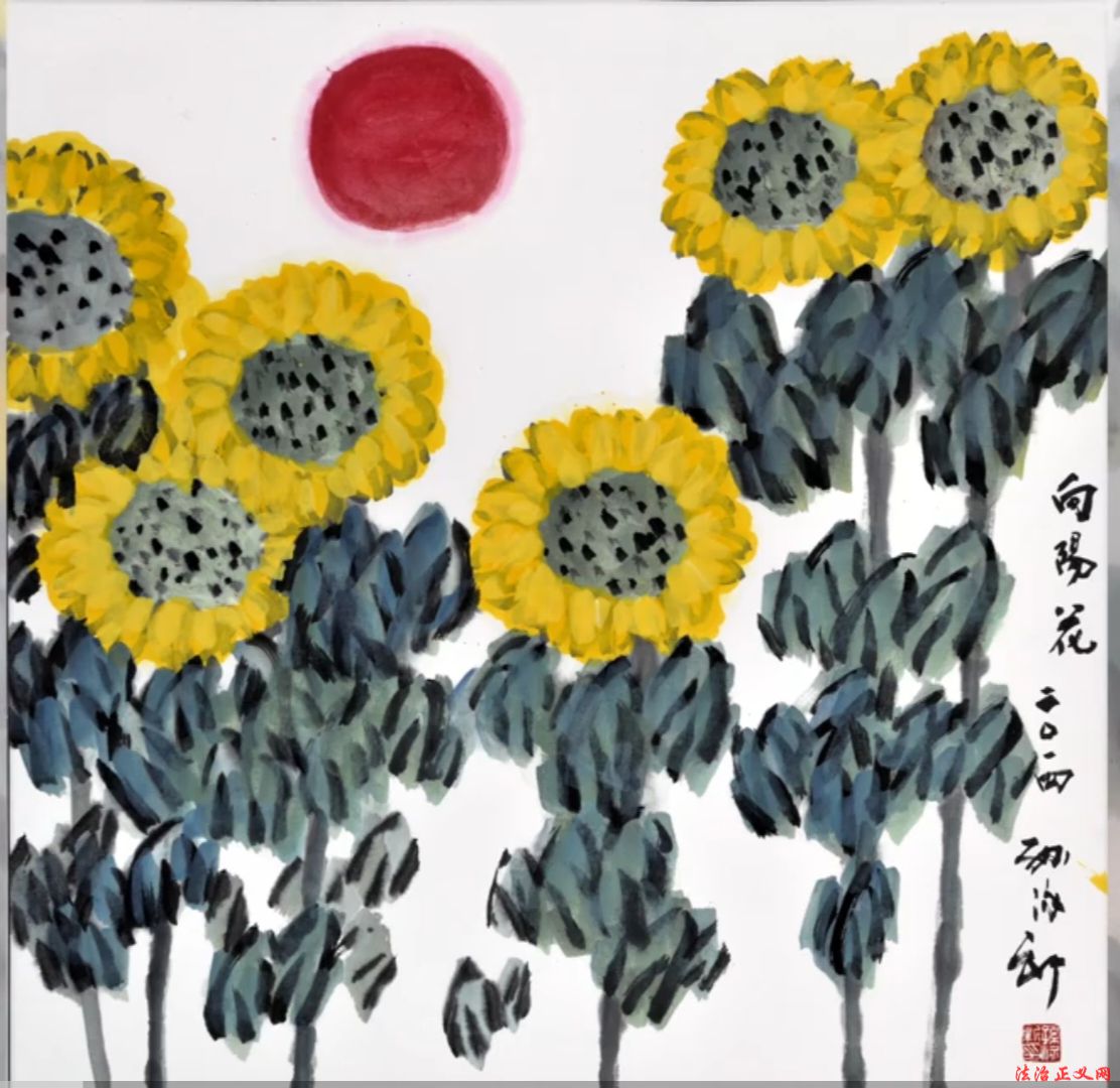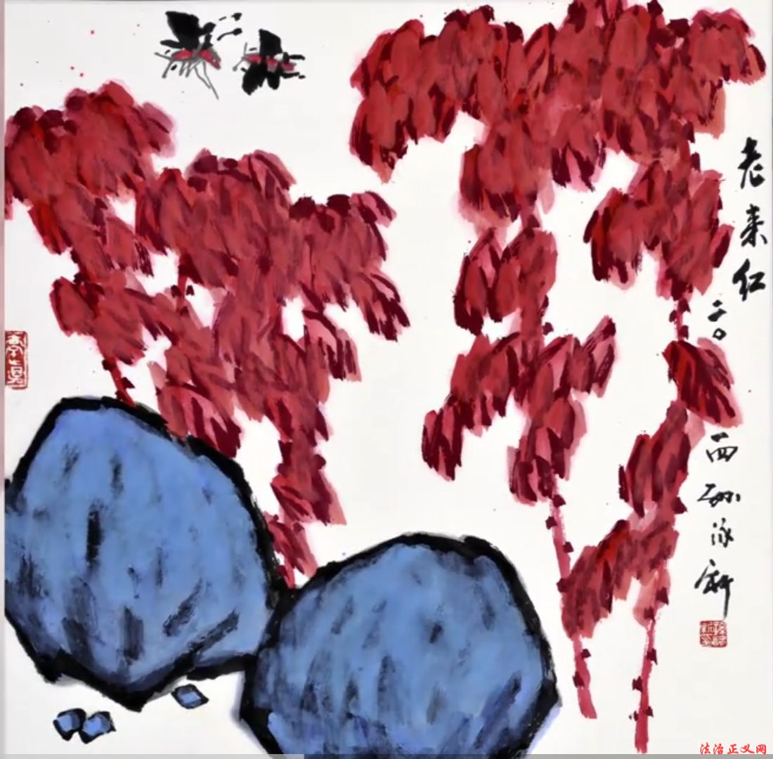 用色:创新墨色融合——或以墨衬色,或以色破墨,大胆运用大红大绛等对比色,艳而不俗,凸显时代气息(如《高粱红了国酒香》)。