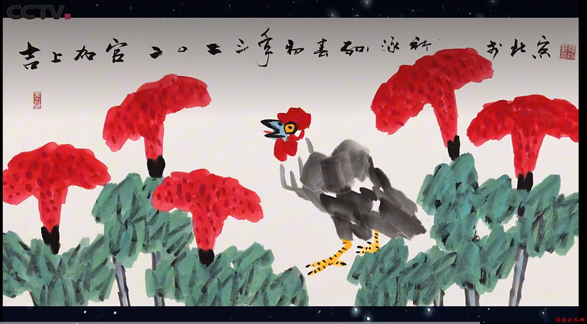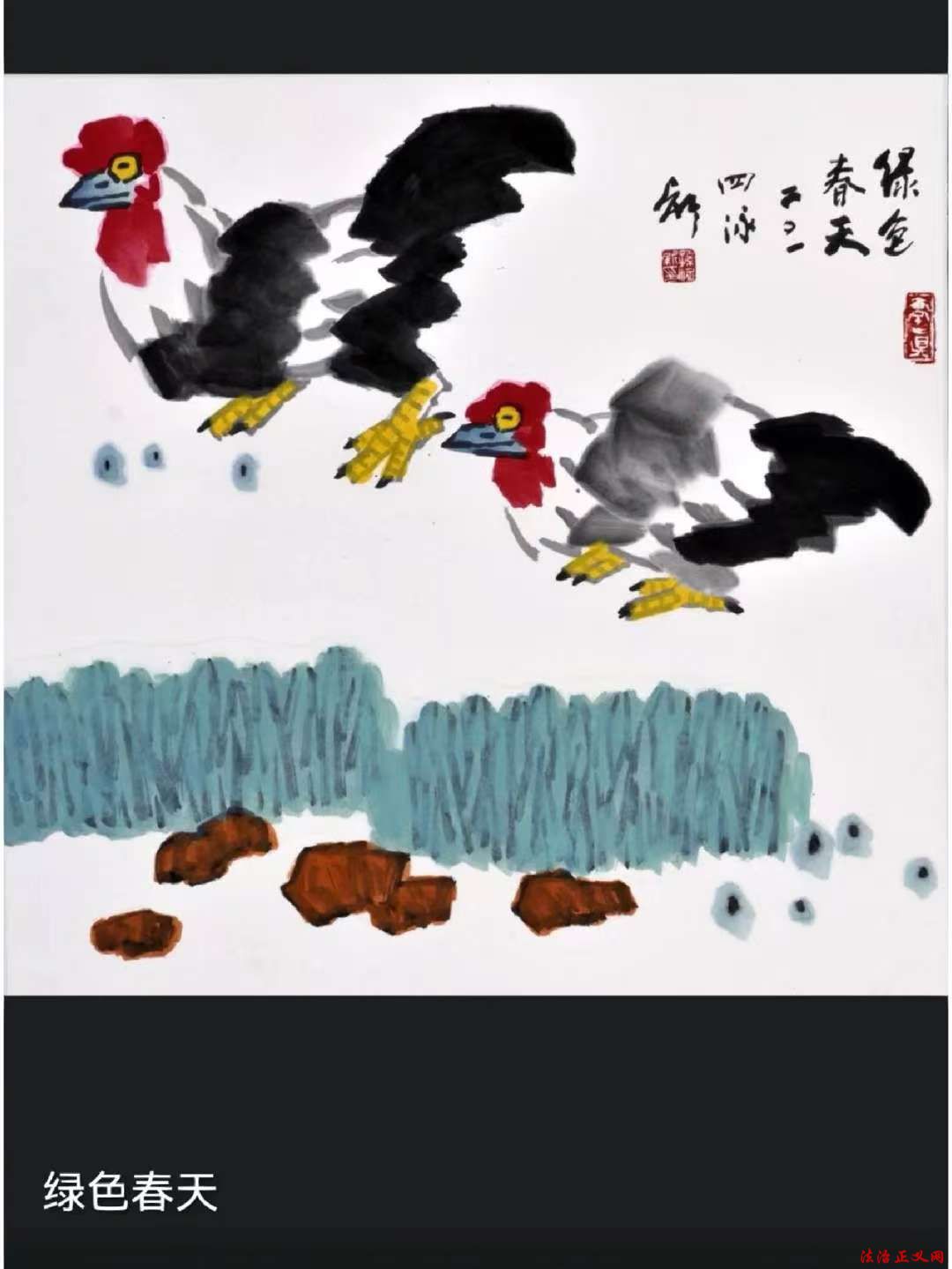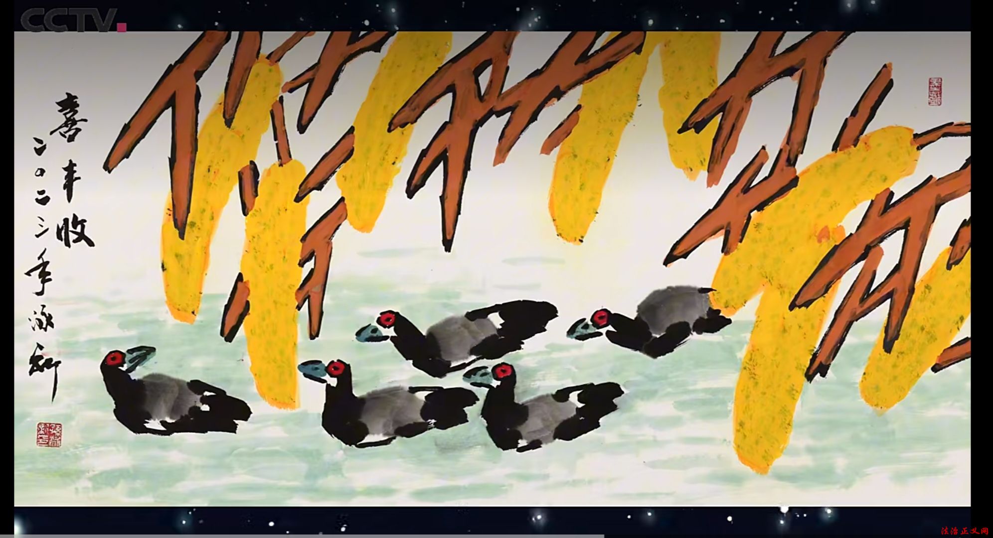 用色:创新墨色融合——或以墨衬色,或以色破墨,大胆运用大红大绛等对比色,艳而不俗,凸显时代气息(如《高粱红了国酒香》)。